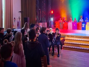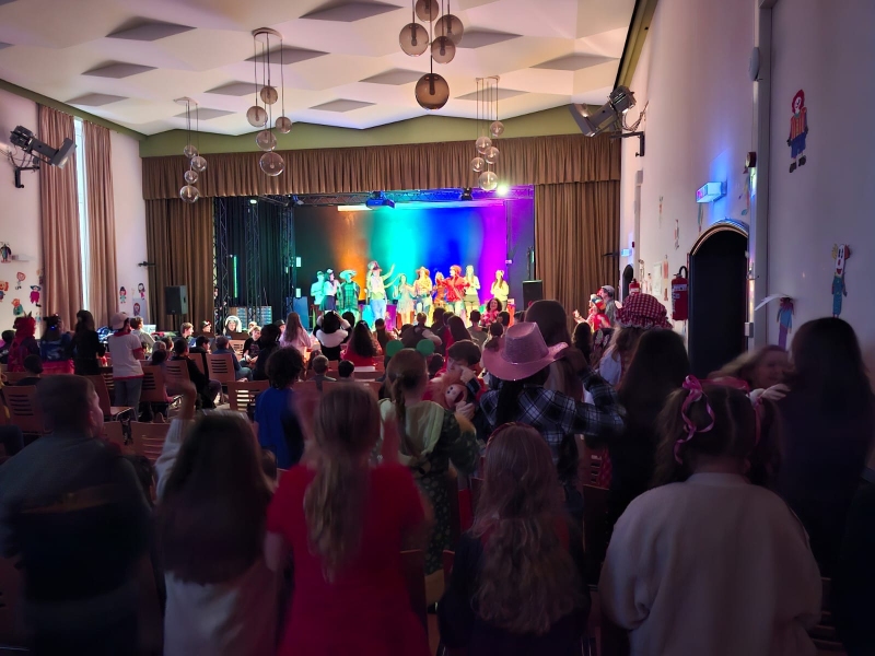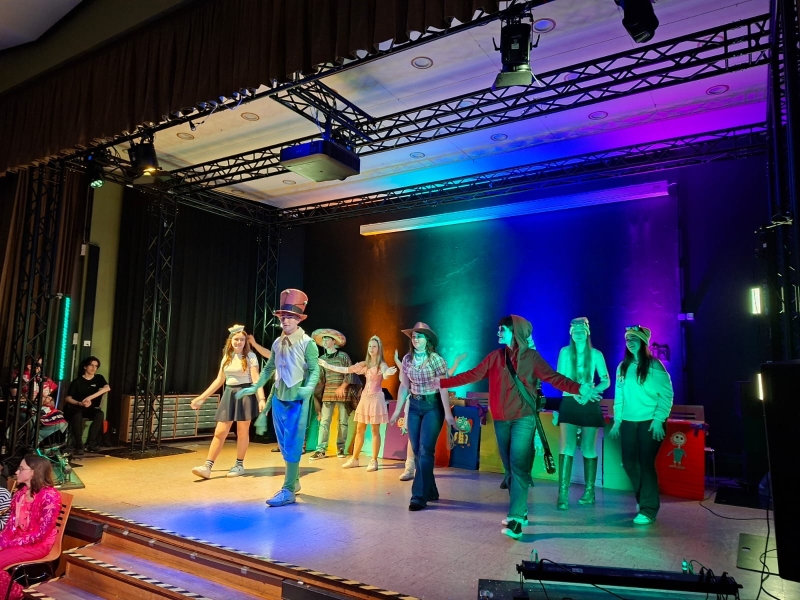 Englisches Theater für die Erprobungs- und Mittelstufe: das White Horse Theatre besuchte uns am 13.01.2025 mit dem Stück "Maid Marian" für die Klassen 5 und 6. Die Klassen 8 und 9 sahen "Dreaming in English". Neben Musik und Humor, trumpfte das Ensemble mit Gastschauspieler:Innen aus unseren Reihen auf- viele Kinder konnten selbst Teil des Schauspiels werden. Nach den Theaterstücken konnten die Kinder noch auf Englisch mit den SchauspielerInnen sprechen.
