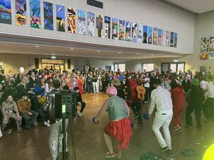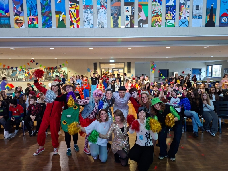 Auch in diesem Jahr wurde Weiberfastnacht gebührend gefeiert. Sowohl bei der Veranstaltung in der Mensa als auch auf der Bühne in der Aula fand ein buntes, jeckes Programm statt. Wir bedanken uns bei allen Feiernden, Beteiligten, Engagierten und besonders beim Organisationsteam.