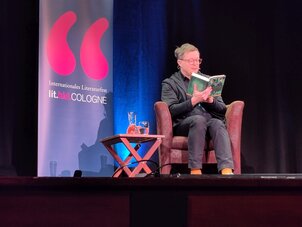 Auf der Bühne hat Benedict Mirow verschiedene Stellen aus dem Roman vorgelesen. Dabei hat er nicht nur einfach so gelesen, sondern er ist in seine Romanwelt eingetaucht und hat seine Figuren für uns zum Leben erweckt. Er hat es geschafft, uns alle neugierig auf sein Buch zu machen.