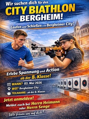 Im Finale des diesjährigen Bergheimer City-Biathlon am 26.05.2023 belegten die 2 Schülerstaffeln des Erftgymnasiums souverän die Plätze eins und zwei.