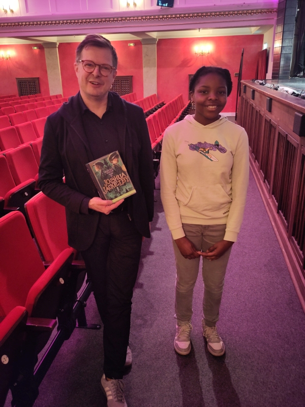 Am Donnerstag, dem 12.03, haben wir einen Ausflug zur lit.kid.cologne nach Köln ins Volkstheater am Rudolfplatz gemacht. Dort hat der Autor Benedict Mirow uns und weiteren Klassen aus anderen Schulen aus seinem neuen Buch „Joshua Jackelby“ vorgelesen.