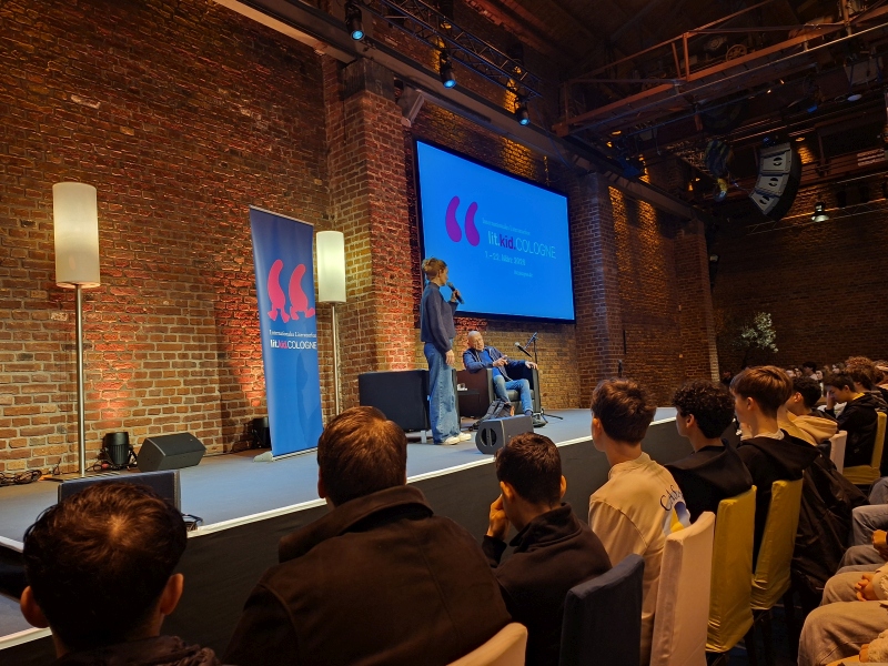 Am 09. März 2026 machte die Klasse 9d einen Ausflug zur lit.kid.COLOGNE nach Köln. In den Balloni Hallen gab es eine spannende Diskussionsveranstaltung mit dem Journalisten und Autor Günter Wallraff, welcher durch sein Buch „Ganz unten“ bekannt wurde. Gemeinsam mit den Klassenlehrer*innen Frau Laura Heuckmann und Herrn Sebastian Emig ging es mit dem Zug nach Köln. „Neben dem Unterricht in der Schule sind solche außerunterrichtlichen Aktivitäten wichtig für die Schul- und Klassengemeinschaft. Daher freuen wir uns, dass wir einen schönen Tag mit unserer Klasse hatten und einem spannenden Vortrag folgen durften“, so die beiden teilnehmenden Lehrkräfte.